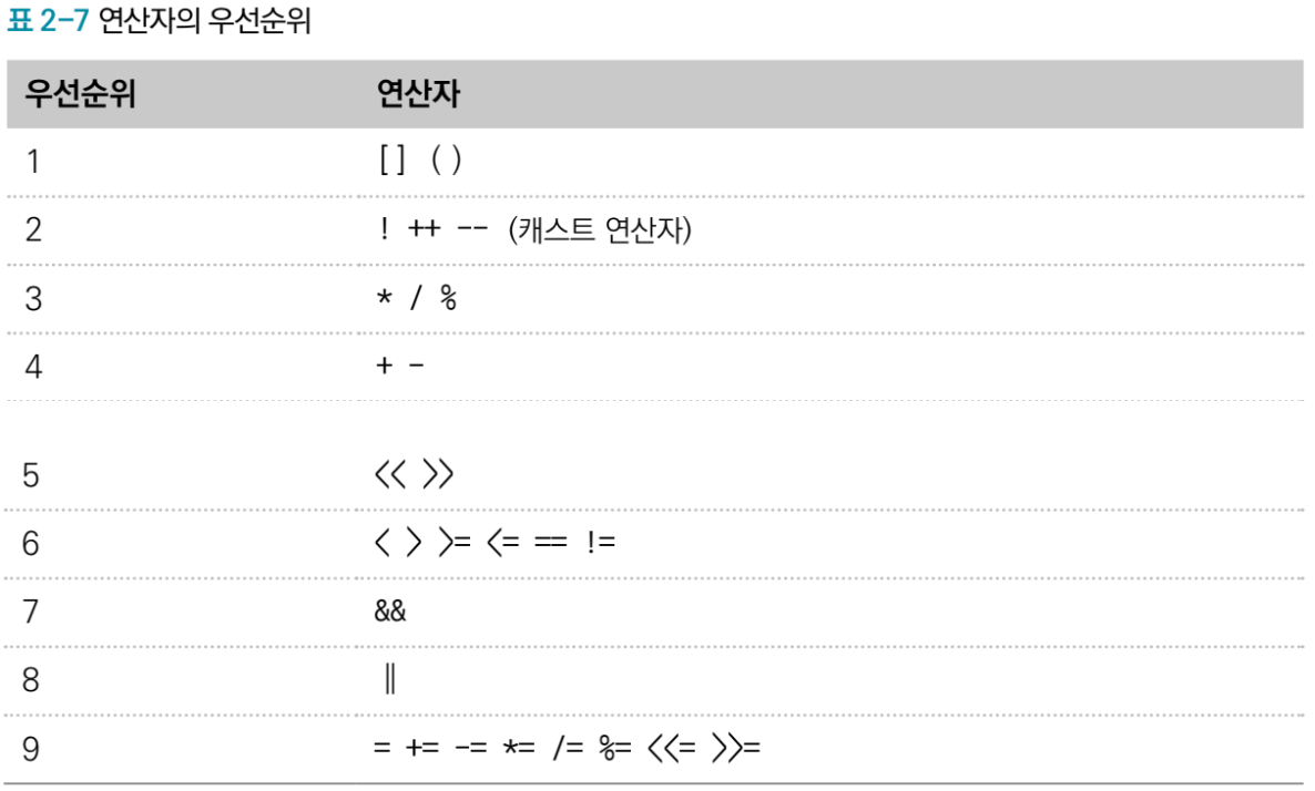 2.2 여러 가지 연산자 - 2.2.5 연산자의 우선순위